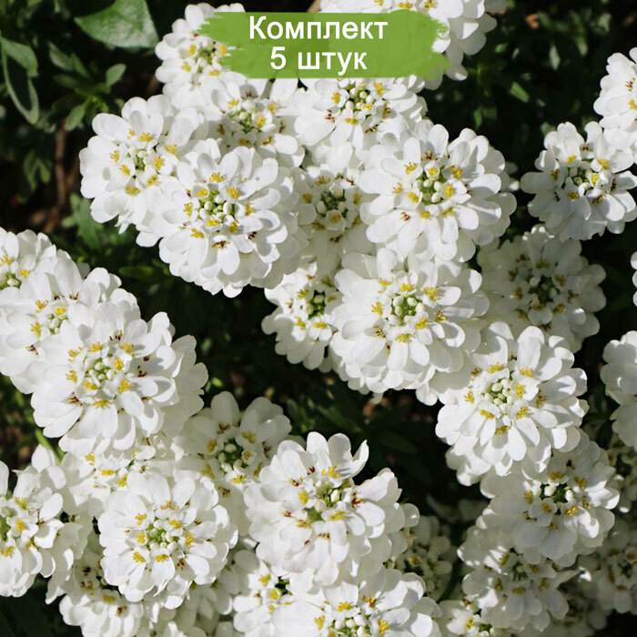 В комплекте 5 саженцев, готовых к высадке в открытый грунт. Превратите ваш сад в цветущий оазис с помощью ибериса вечнозеленого Тахо!